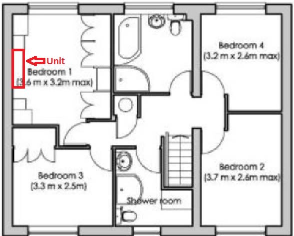 A professional site survey will confirm the best placement for the indoor unit within the bedroom. Typically, the unit will be mounted on a central wall to maximise airflow. The outdoor condenser will be installed directly behind the indoor unit to minimise refrigerant line length and improve efficiency.